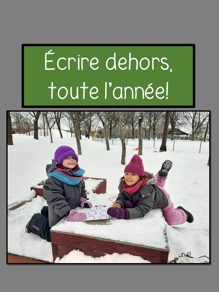 Depuis 2018, j’intègre l’école dehors à ma pratique et j’amène mes élèves apprendre à l’extérieur au moins une fois par semaine, peu importe la saison. Soleil, pluie ou neige, la nature fait partie de notre quotidien d’apprentissage.